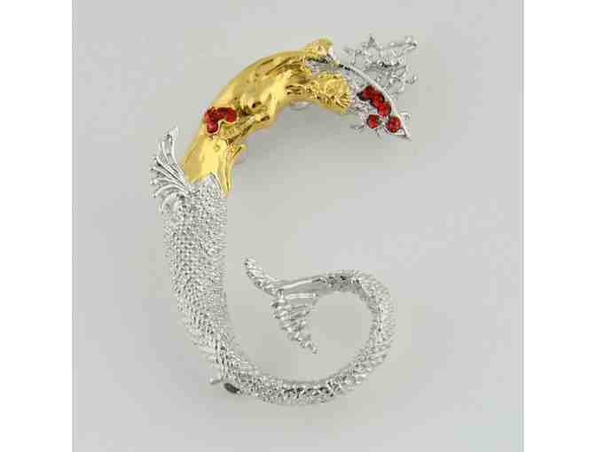 THIS IS YOUR GOLDEN OPPORTUNITY TO OWN A GENUINE ERTE ART DECO CREATION! From an original design by the “Father of Art Deco”, Erte’s famous “Alphabet” series was first a Suite of Serigraphs and then a priceless collection of figures cast in precious metals set with gemstones. We are pleased to present this sparkling Pendant/Brooch depicting the letter “D”, made of solid gold-plated Sterling Silver and hand-set Swarovski crystals, cast from the same mold used to create the original! This piece comes in a simple and pretty gift box with the Erte stamp on it. Officially Licensed by the Estate of ERTE, bearing the official stamp of his signature! Measures approx. 1.5" x 1", 3.6 grams (weight).