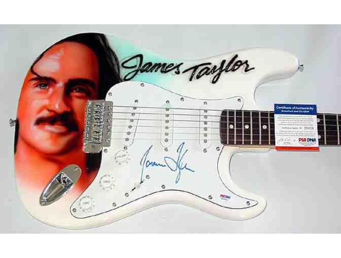 THIS IS A GUITAR WITH CUSTOM AIRBRUSH ART HAND SIGNED IN PERSON BY JAMES TAYLOR. A CERTIFICATE OF AUTHENTICITY WILL BE INCLUDED FROM UACC REGISTERED DEALER #237 / 2011 UACC AUTOGRAPH DEALER OF THE YEAR!PSA/DNA HOLOGRAM HAS BEEN APPLIED AS THIS HAS BEEN EXAMINED AND CERTIFIED AUTHENTIC FROM PSA/DNA, THE WORLD'S LARGEST 3RD PARTY AUTOGRAPH AUTHENTICATION FIRM.