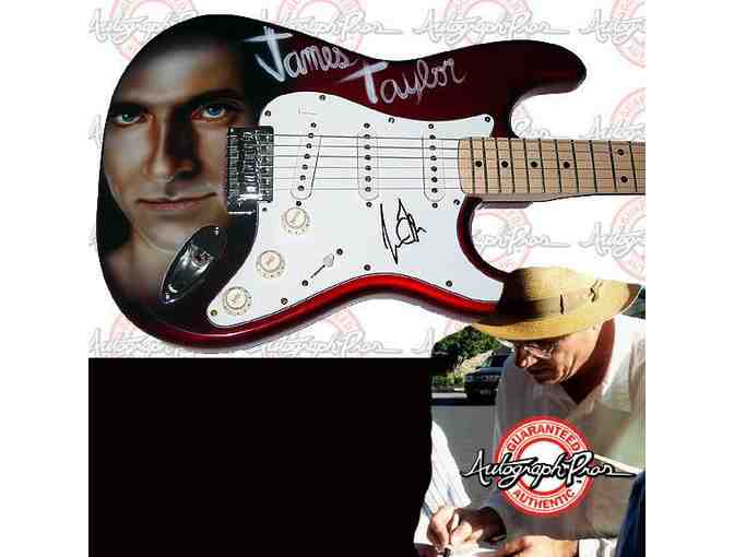 James Taylor was kind enough to autograph this full size brand new FENDER model guitar which has been custom airbrushed by one of Nation's greatest airbrush artists