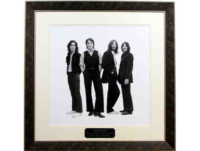 Classic Vintage photograph of The Beatles. Item comes framed with nameplate and measures 20x20.