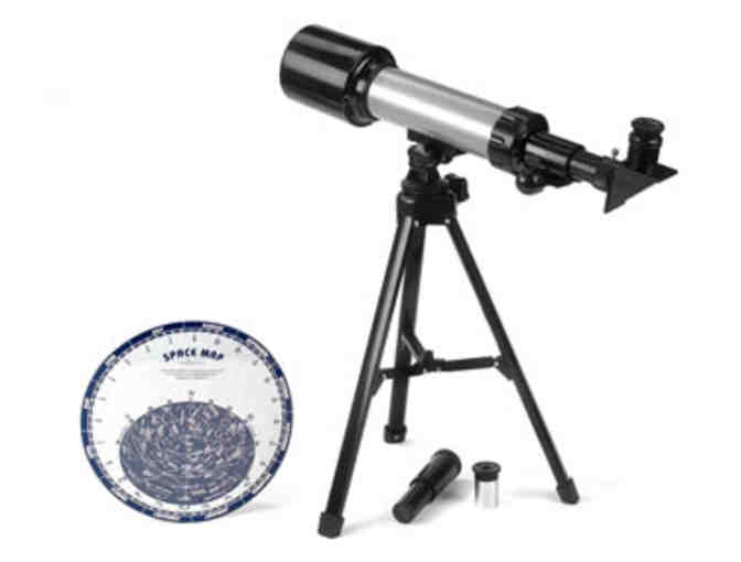 With this ingenious telescope, it’s easy to get an up-close look at everything from craters on the moon to the Big Dipper! Top-quality, 180X telescope features incredibly clear optics, precision focusing and a Barlow lens that magnifies images even further—giving kids a crisp, frustration-free view! Heavy-duty 15 1/4" telescope comes with a sturdy metal tripod and 2 interchangeable eyepieces, plus a constellation map.