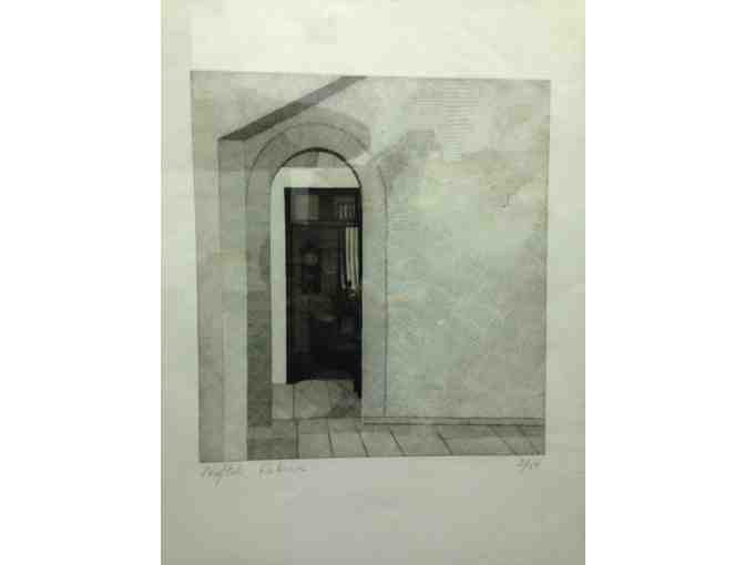 "As Seen Through a Doorway," original, black engraving/paper, 1982, 24"x20", signed/numbered #2/50.