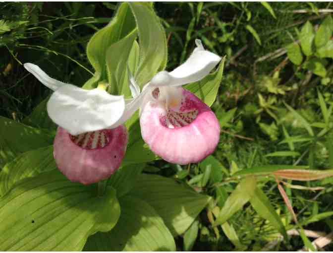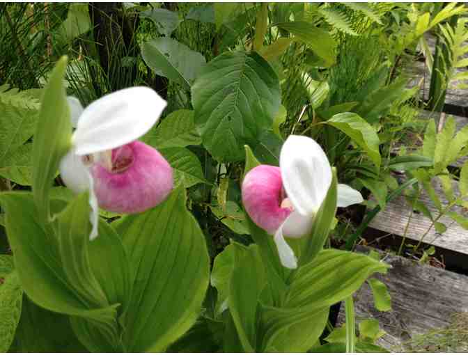 Bid today on a very special private walk of the sanctuary with Amanda Weise, Ecological Programs Coordinator at New England Wild Flower Society, and four of your friends in June 2015 to see showy lady's-slippers (Cypripedium reginae), white northern bog-orchids (Platanthera dilatata), green bog-orchids (Platanthera huronensis), and yellow lady's-slippers (Cypripedium parviflorum var. pubescens). An amazing sight...don't forget your cameras!