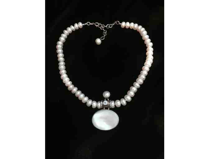 Reflections - Sterling Silver Handmade Pendant on Freshwater Pearls with Shell, White Topa