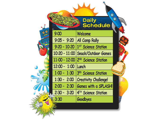 This donation is good for: One Full-Day week of ‘Aha!’ Moments at DESTINATION SCIENCE. For Ages 5-11 - M-F, 9:00am-3:30pm (ext. hrs. @ most locations).