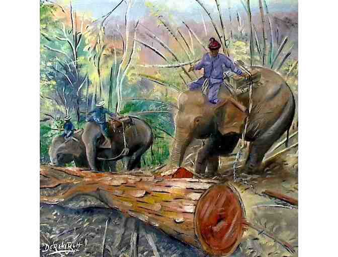 "Logging Elephants Northern Thailand" by Artist Derek Rutt: 12x12" CANVAS!