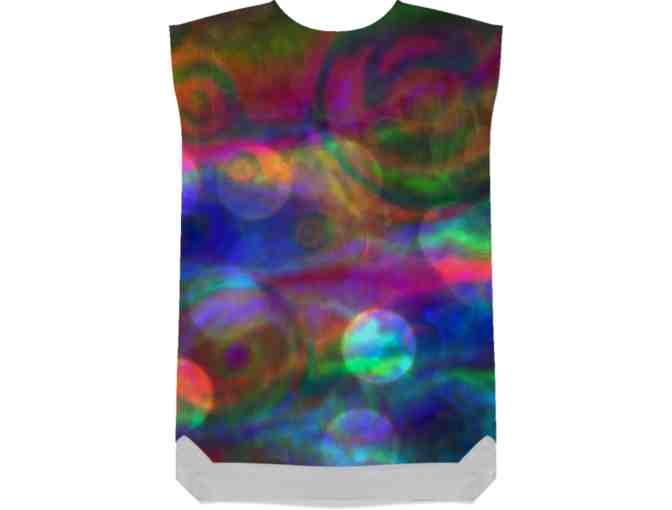 Show off those beautiful legs and float through any event in artified style that will, definitely, get YOU noticed! or... Throw on a pair of jeans, leggings, or leather pants and simply "strut" this work of art anywhere you go!