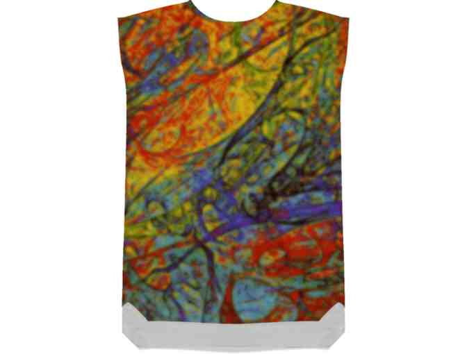 Show off those beautiful legs and float through any event in artified style that will, definitely, get YOU noticed! or... Throw on a pair of jeans, leggings, or leather pants and simply "strut" this work of art anywhere you go!
