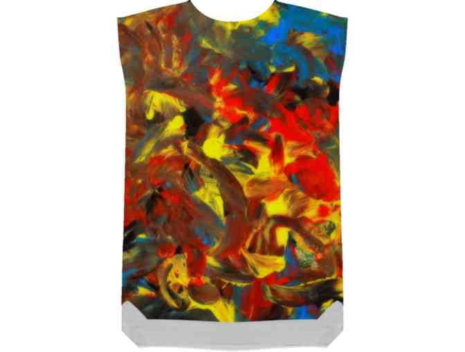 Show off those beautiful legs and float through any event in artified style that will, definitely, get YOU noticed! or... Throw on a pair of jeans, leggings, or leather pants and simply "strut" this work of art anywhere you go!