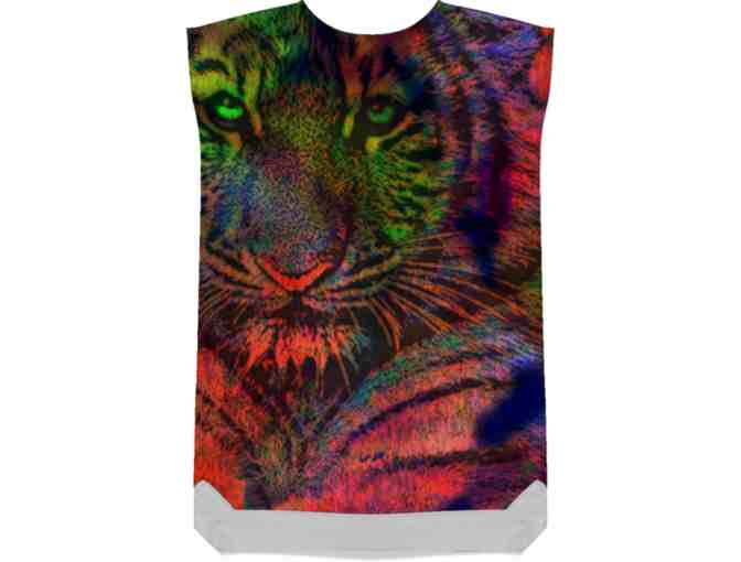 Show off those beautiful legs and float through any event in artified style that will, definitely, get YOU noticed! or... Throw on a pair of jeans, leggings, or leather pants and simply "strut" this work of art anywhere you go!
