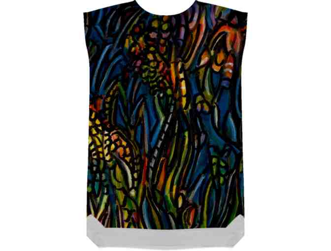 Show off those beautiful legs and float through any event in artified style that will, definitely, get YOU noticed! or... Throw on a pair of jeans, leggings, or leather pants and simply "strut" this work of art anywhere you go!