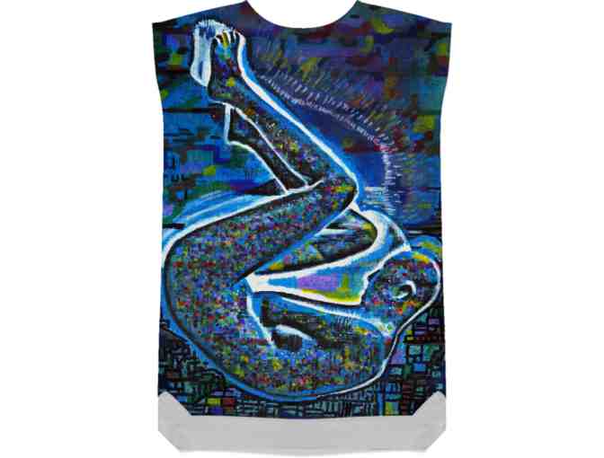Show off those beautiful legs and float through any event in artified style that will, definitely, get YOU noticed! or... Throw on a pair of jeans, leggings, or leather pants and simply "strut" this work of art anywhere you go!