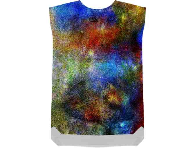 Show off those beautiful legs and float through any event in artified style that will, definitely, get YOU noticed! or... Throw on a pair of jeans, leggings, or leather pants and simply "strut" this work of art anywhere you go!