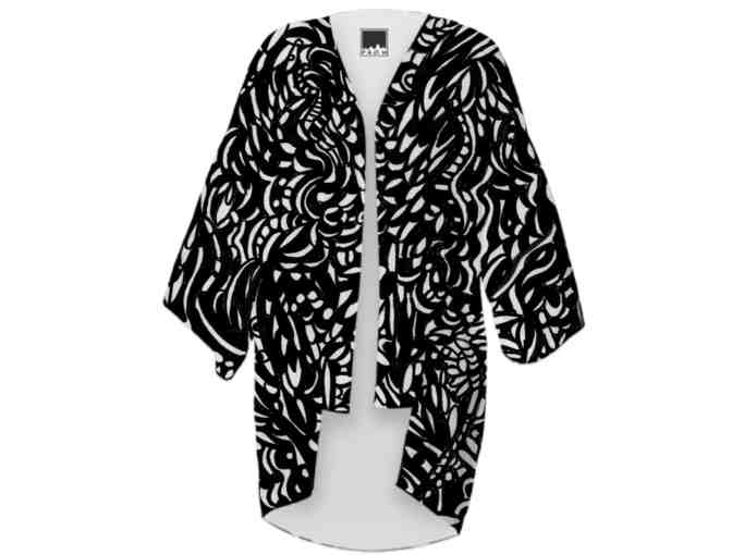 It's all in the details! Each work of art will cover the entire kimono / The reverse side will mirror the front / 100% polyester chiffon