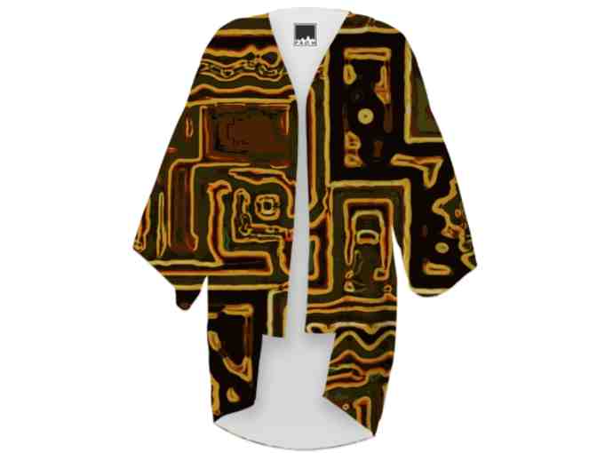It's all in the details! Each work of art will cover the entire kimono / The reverse side will mirror the front / 100% polyester chiffon