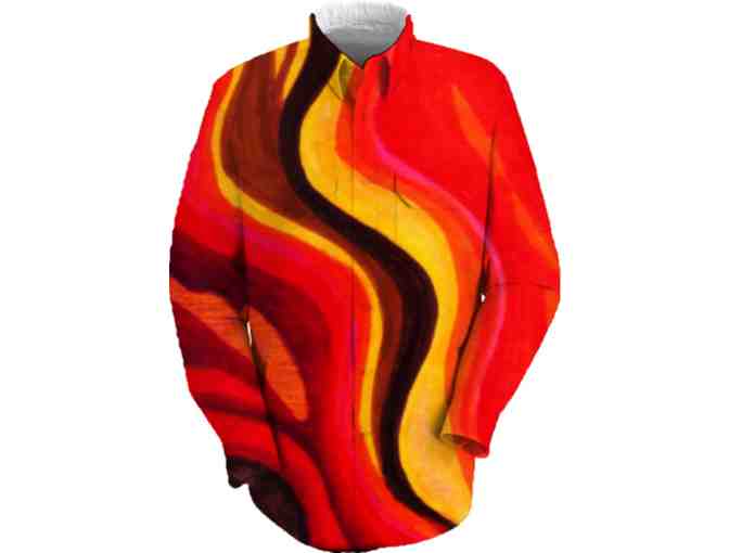 On a more personal experience note: When I ordered the original samples, I could not resist ...I had to wear them, and these art shirts have become my "go to essential" in my wardrobe! I could not begin to even describe how comfortable and versatile they are...with jeans, open with a tank under, or belted...they are color saturated, have long lasting sturdy heft, yet these shirts are so dang comfortable, I keep ordering more! Yes, it is fun..really WAY COOL to WEAR ART!! (WBK)