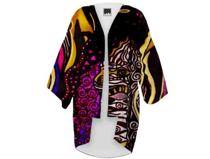 Now, you can make an artistic impression by stepping out of the boudoir and into any social scene in this ART Kimono!