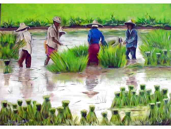 "Rice Planting Central Thailand" by Artist Derek Rutt: 10x14" Canvas!