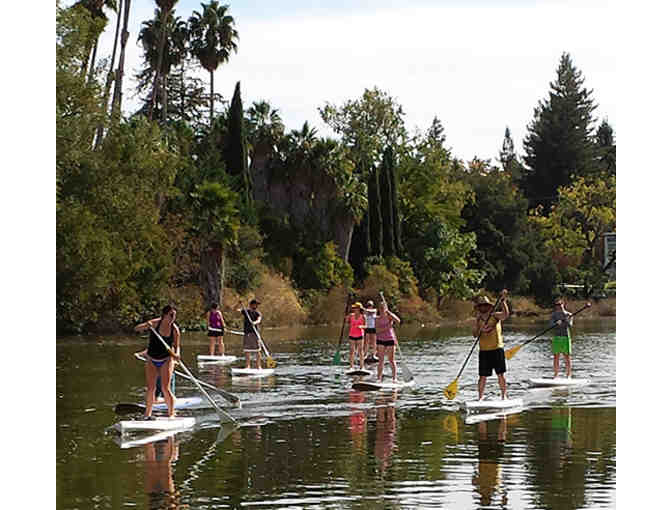 After on-shore lesson on how to use a standup paddleboard, tourists paddle into the northern reaches of the pristine Napa River, enjoying some of the finest paddleboarding conditions in the country. After the guided tour, guests take a short boat ride to a harvest celebration hosted by Salute Santé! Grapeseed Oil. There guests enjoy a spread that features a selection of cheese, smoked prosciutto, bread, and three varietals of the house-made grapeseed oil. Guests also receive a bottle of wine to take home.