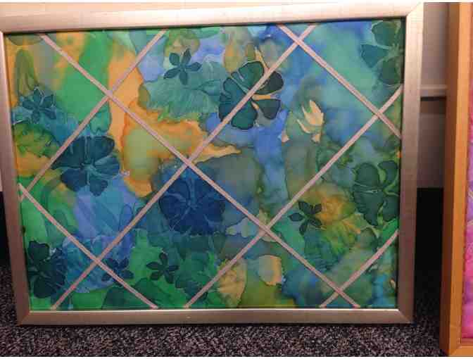 Mrs Cramers Classroom made French Silk Bulletin Board . framed , ready to hang beautiful Hibiscus theme.Has a Gold frame