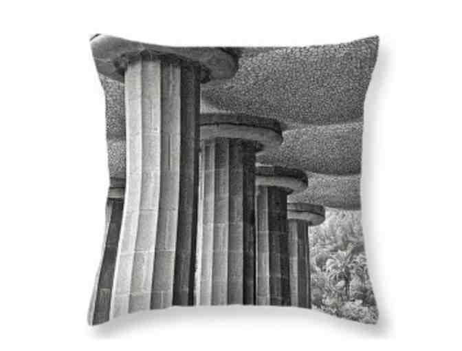 This art pillow is created by Westlake parent Iris Weaver from a 35mm negative taken with an old Pentax and developed in the darkroom. Park Guell is in Barcelona, Spain.