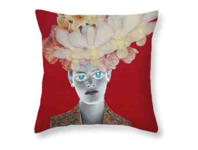 The Look Pillow is made from a mixed media piece by Westlake parent Iris Weaver created with watercolors, acrylics, an old photograph, orchids, and pearls.