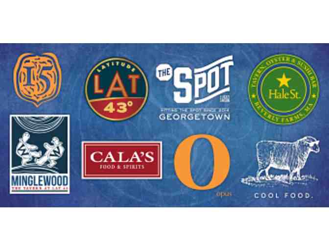 Opus (Salem) - 15 Walnut (South Hamilton) - Cala's Food and Spirits (Manchester) - Minglewood Tavern (Gloucester) - Latitude 43 (Gloucester) - Hale St. (Beverly) - Maggie's Farm (Middleton)