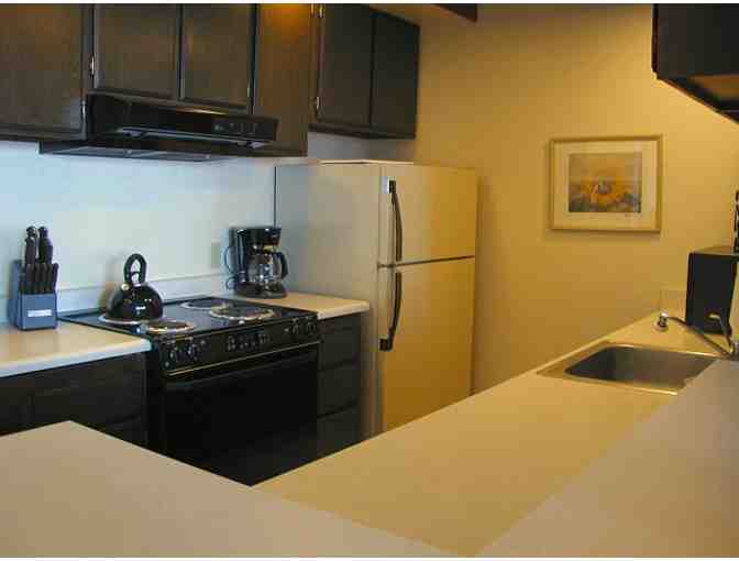 More - A tile entry greets you as you enter this well lighted downstairs condo end unit. A feeling of spaciousness occurs as you step down into the living room, dining and kitchen area. The living room has a mountain theme couch and two matching overstuffed chairs. DSL available!