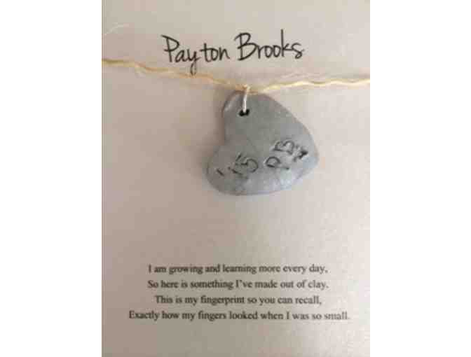 This heart charm was made with help from your child! He/She presssed their cute little fingerprints into clay to make you this keepsake that can be used as a key chain, necklace or just a special piece.