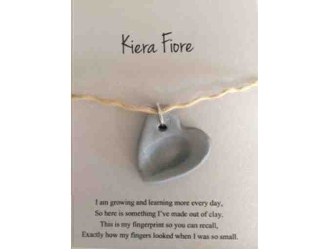 This heart charm was made with help from your child! He/She presssed their cute little fingerprints into clay to make you this keepsake that can be used as a key chain, necklace or just a special piece.