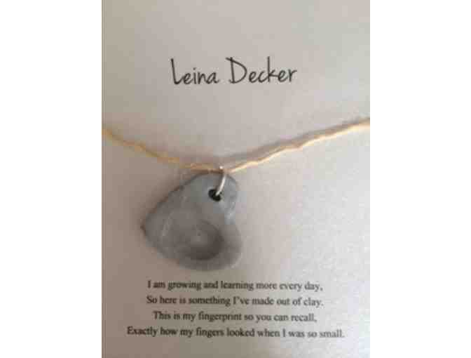 This heart charm was made with help from your child! He/She presssed their cute little fingerprints into clay to make you this keepsake that can be used as a key chain, necklace or just a special piece.