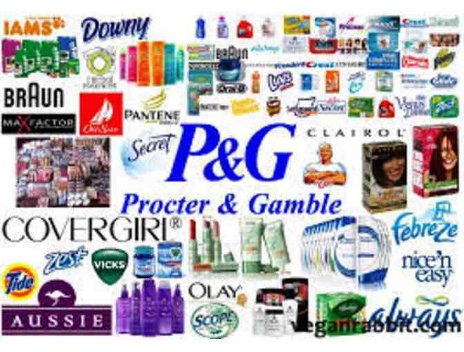 Pantene Sheer Volume Shampoo, Pantene Sheer Volume Conditioner, Venus & Olay Razor, Secret Outlast Antiperspirant Deodorant, two Olay Bar Soaps, Old Spice Shampoo, Old Spice Body Spray, Old Spice Hair Paste, Old Spice Antiperspirant Deodorant, Gillette Fusion Proglide Razor, Olay Fresh Effects Towelettes, Olay Regenerist Micro-dermabrasion treatment, Crest Pro-health For Me Toothpaste, Crest 3D White Toothpaste, Crest 3D White Mouthwash, Oral B Pro-health for me Toothbrush, Oral B Pro-health Clinical Toothbrush, Oral B Pro-heatlh Toothbrush, Puff’s Tissues.