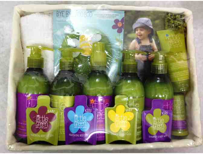 This Kids Bundle comes ready for gifting in an adorable woven green basket with an embroidered cloth insert.