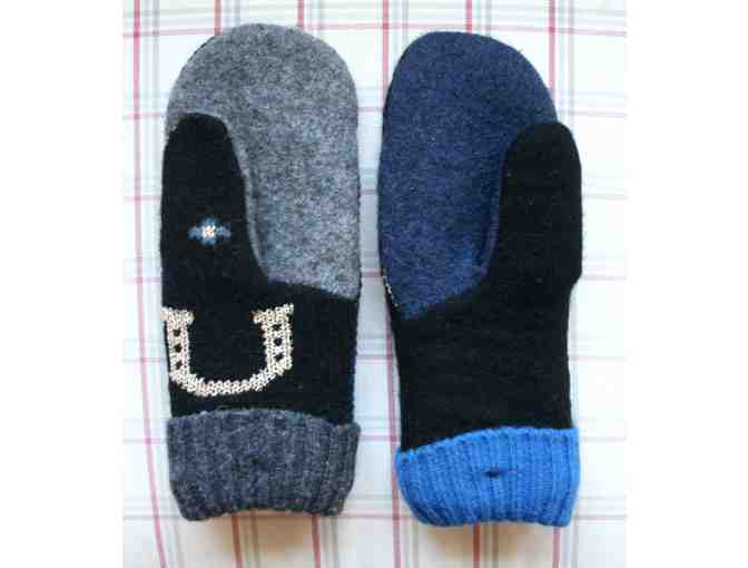 Baabaazuzu recycled sweater mittens are warm and fashionable. Each pair is carefully coordinated with pieced together-upcycled sweaters in a wide range of color and pattern combinations. These felted mittens from recycled sweaters make great gifts and keep hands unbelievably warm.