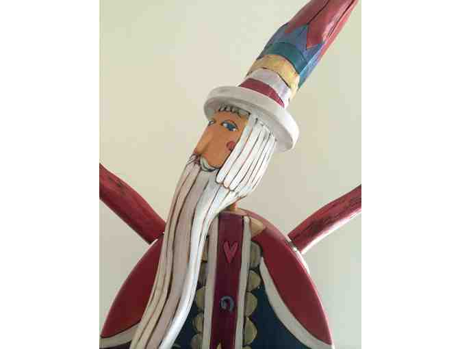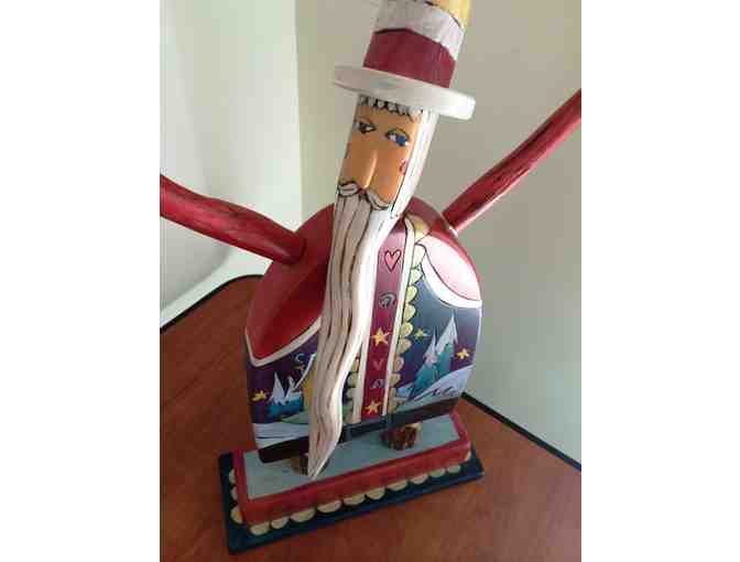 This beautiful Sticks Santa is handcrafted from start to finish from birch, poplar and driftwood by talented artisans within Sticks’ award winning studio in Des Moines, Iowa. Many of the birch and poplar logs used are actual pieces of driftwood, found along riverbanks, which have naturally aged and dried. Three coats of non-toxic finish for durability.