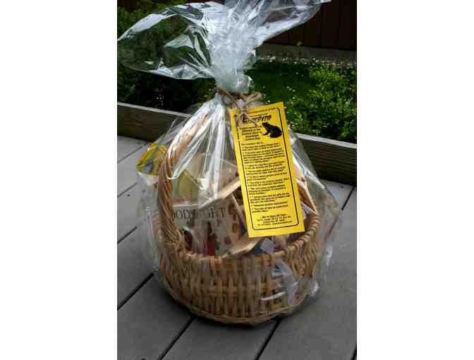 A basket full of treasures generously donated by Enerdyne Science Store! Ideal for 8-10 year olds. Basket includes: Wooden Red Baron Plane Model, 2 jetfire glider planes, Wooden Battue game, and Food Fight Fruit Cards game.