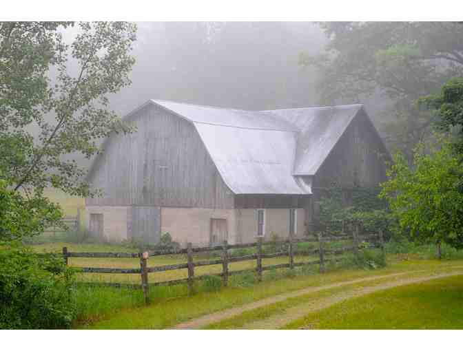 A beautiful photograph of a barn in the mist on French Rd in Leelanau taken by photographer Eric Munson.