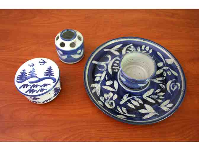 Retired potter Karl Sporck is no longer making and selling his beautiful functional ceramic pieces like this set in blues and whites.