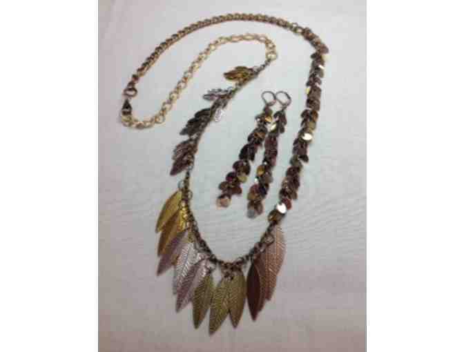 Multi-Metal Leaf Necklace and Matching Earrings