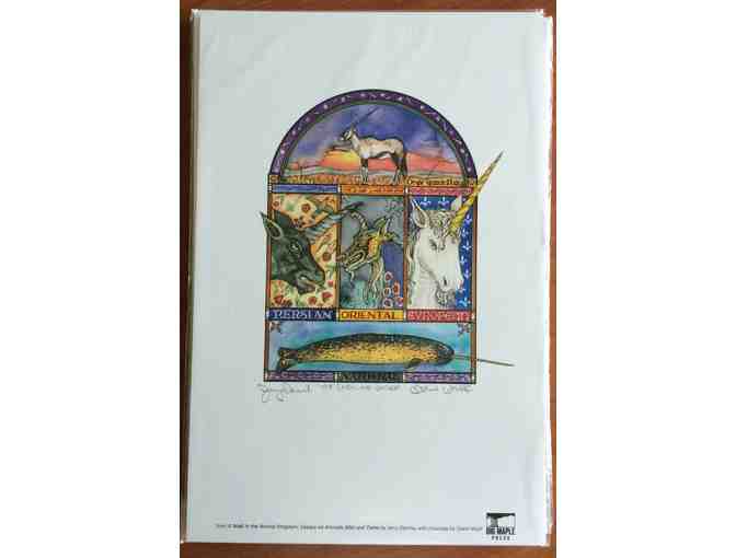 The Third Volume in Jerry Dennis and Glenn Wolff's Wonders of Nature Series: A Walk in the Animal Kingdom: Essays on Animals Wild and Tame AND prints of 3 of Glenn Wolff's illustrations in the book. (All prints and book are signed by Glenn Wolff and Jerry Dennis.)
