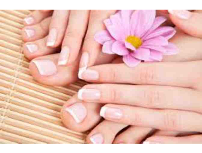 Salone de Bella woman's wash, cut and style, Elegante Nails manicure, beautiful beaded bracelet from Holliston Jewelers