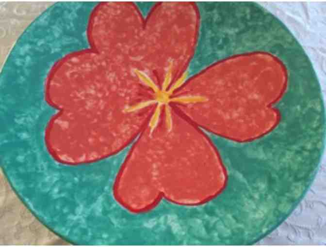 A round 15 inch diameter platter inspired by the work of Georgia O'Keefe, sketched by Mrs. Rebecca Micucci and made from fingerprints of the 2015 Ashland Kindergarten class inscribed with "Warren 2015" on the back!