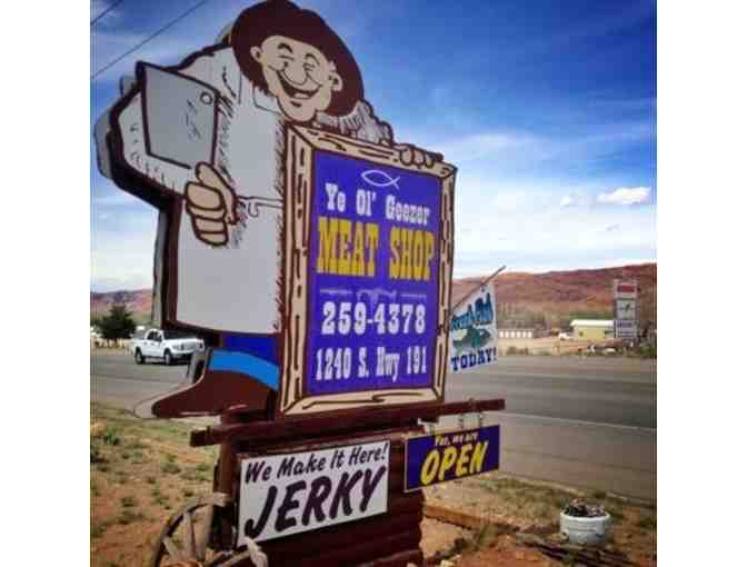 A $25 Gift Certificate good for any item at the Ye Ol' Geezer Meat Shop in Moab, Utah!