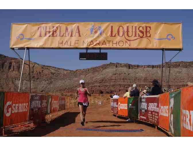 One entry into the June 6th, 2015 4th annual Thelma & Louise Women's Half Marathon. Entry includes short sleeve tech shirt, durable race bag, shuttles, music, refreshments at the start and along the course and at the finish. Plus the opportunity to run one of the most scenic courses in the country, traffic free!