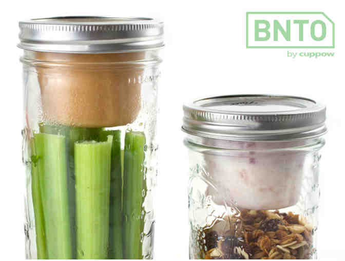 BNTO (ben-toh) is a canning jar adapter for bringing great food with you on the go! Canning jars are designed to store food safely and make an awesome lunchbox: they are easy to clean, cheap, and you can microwave them! The only problem is that sometimes the foods that taste the best together don’t travel well together. Inspired by Japanese bento boxes and these the BENTO adapter is a conveniently shaped insert that separates a canning jar into two compartments so you can mix or dip like a champ. Holds 6 fluid ounces (3/4 cup) and is built to fit snugly under the standard metal lid of a wide mouth canning jar. BNTO should provide the perfect companion for all your food adventures!