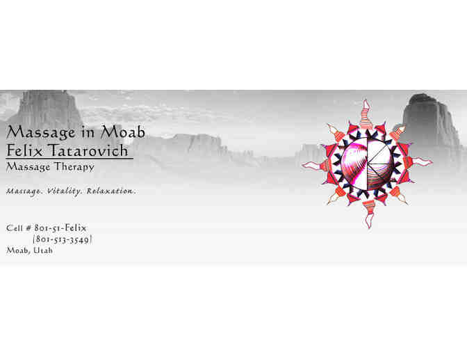 This item is good for one 90 minute massage by Felix Tatarovich of Massage in Moab.