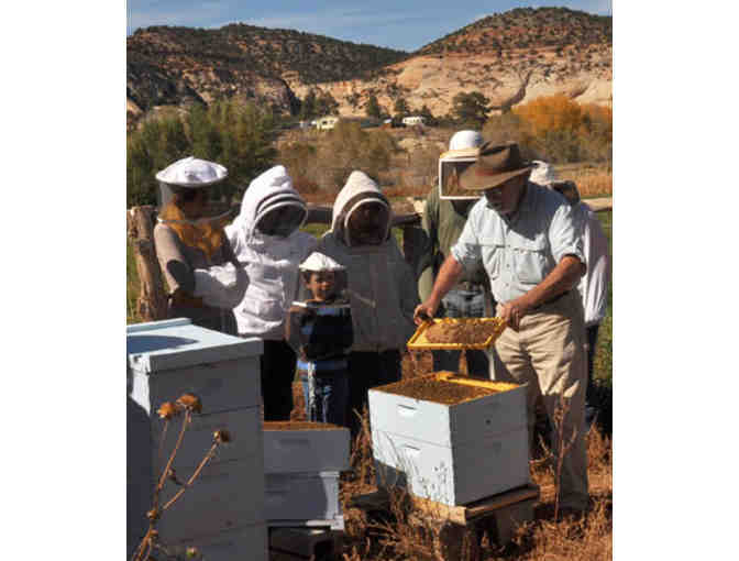 Join Jerry Shue, Grand County Bee Inspector, on a family friendly and safe introduction to the fascinating world of honey bees and beekeeping - finding the queen, watching a "baby" bee emerge from its cell, tasting the honey right out of the hive... Two to three hours, including a honey tasting of many different kinds of honey at the end. Protective veils and clothing provided. Available April through September.