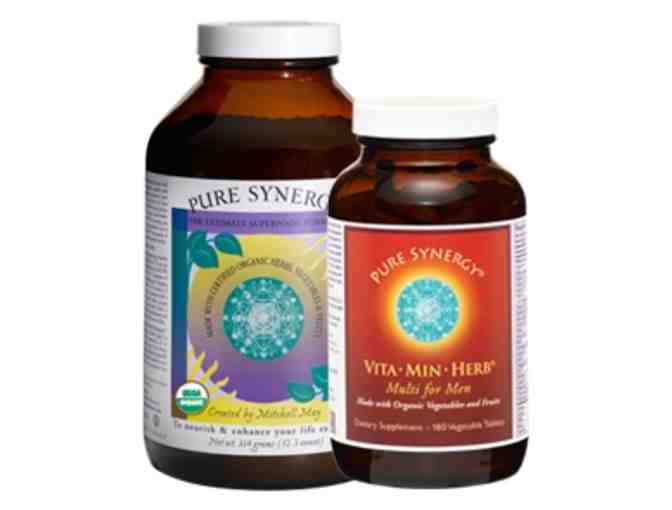 Incudes: a 12.5oz bottle of Pure Synergy® and a 180-count Organic Vita•Min•Herb for Men