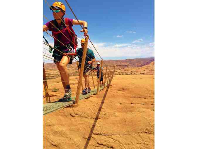 Three hour high-flying back country tour with Raven's Rim Zip Line Adventure. Tour includes four miles of exciting 4 wheel driving to the rim of the valley and back, 6 Zip lines of different lengths up to 1/4 mile, 100 foot suspension bridge and spectacular views of Arches National Park, the LaSal Mountain range and Moab's Slickrock Trail. “Above Adventure - Come Fly With Us!”