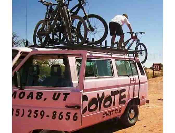 Coyote Shuttle is Moab, Utah’s original bike shuttle and river shuttle. They provide fun and reliable transportation for you, your bike or your boat in this wonderful and crazy place we call home. Coyote Bike Shuttle strives to provide a unique experience for you while you are on vacation. Coyote's goal is to make your ride in the shuttle something to talk about when you get home. You’ll see the scenery on the way up, because you’ll be going too fast to see it on the way down!